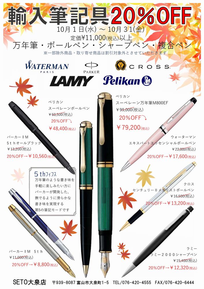 SETO大泉店にて、輸入筆記具のキャンペーンを開催致します。