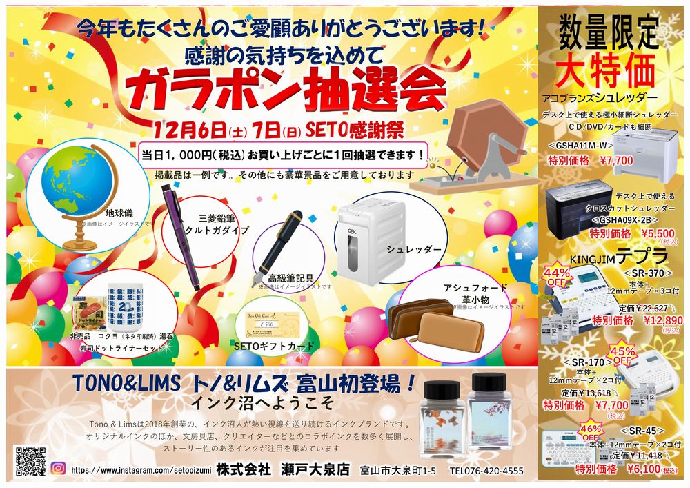 日頃の感謝を込め、年に1度の『SETO大泉店感謝祭』を開催いたします。