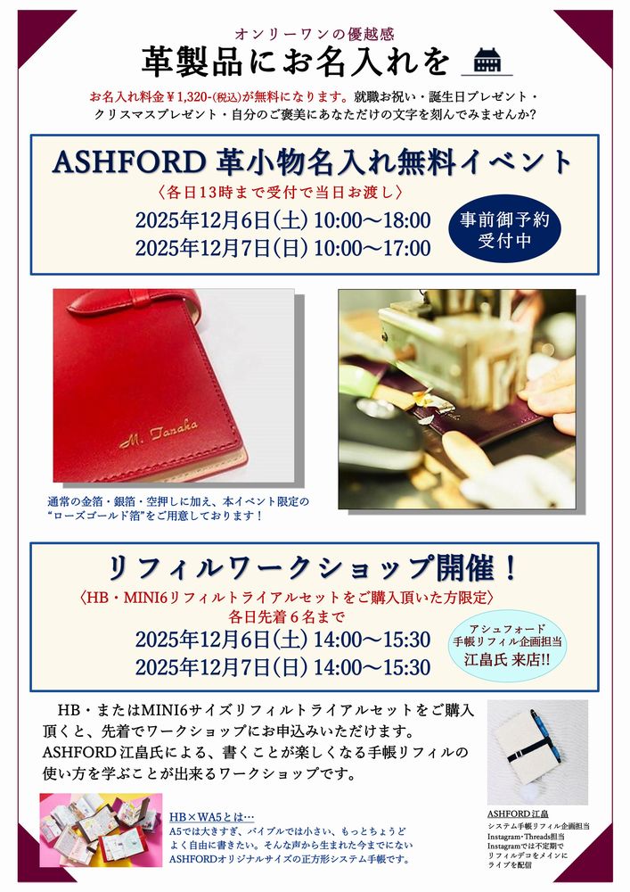ASHFORD革小物名入れ無料イベントチラシPDF