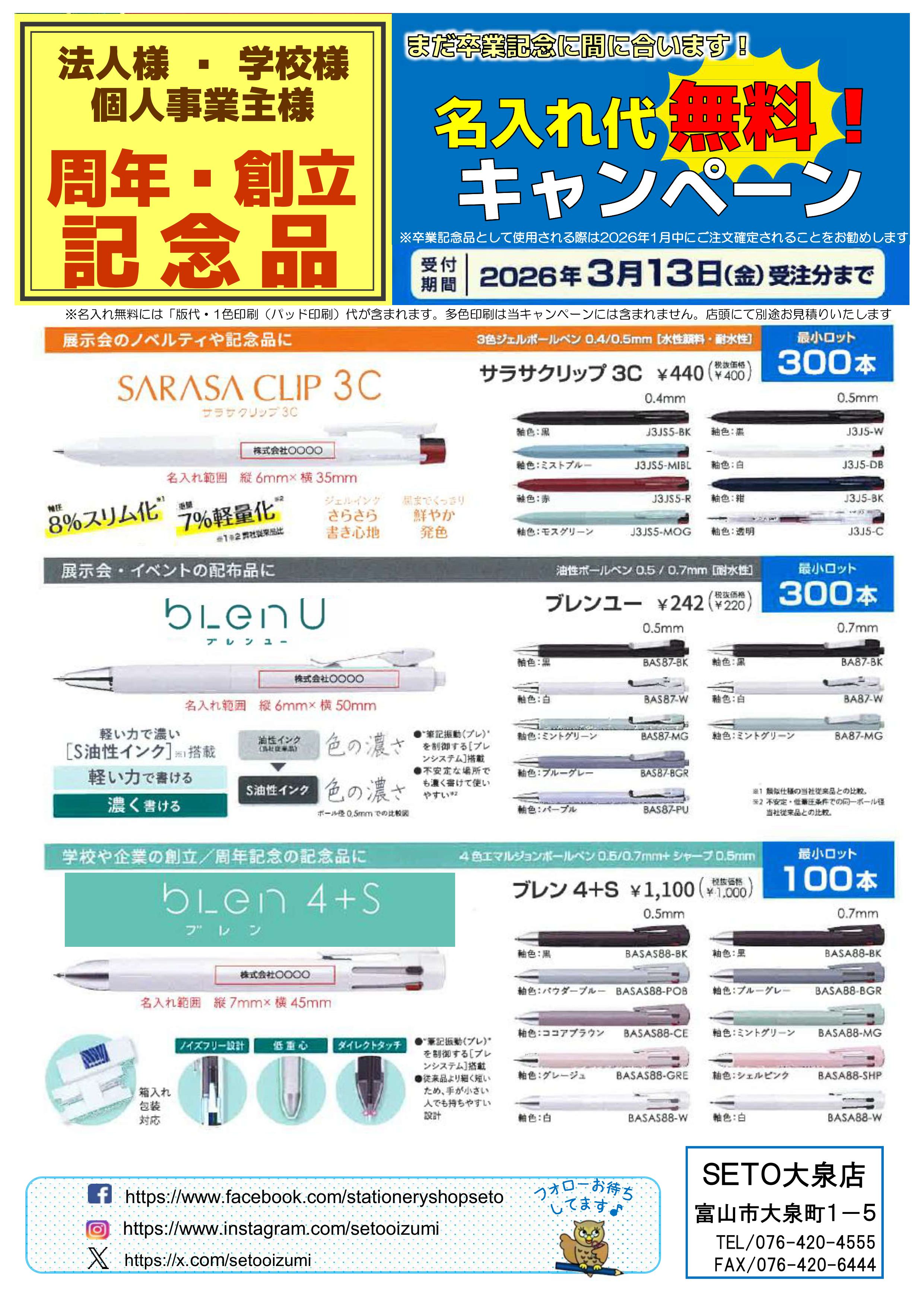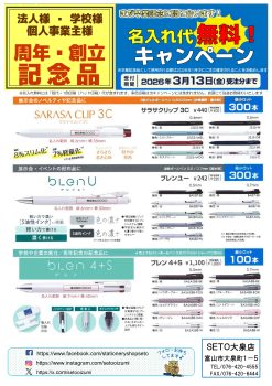SETO大泉店にて、ゼブラ ノベルティ名入れ代無料キャンペーンを開催中です。