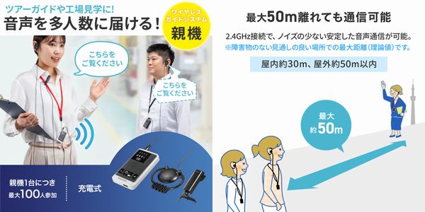■ツアーガイドや工場見学に便利なワイヤレスガイドシステム。